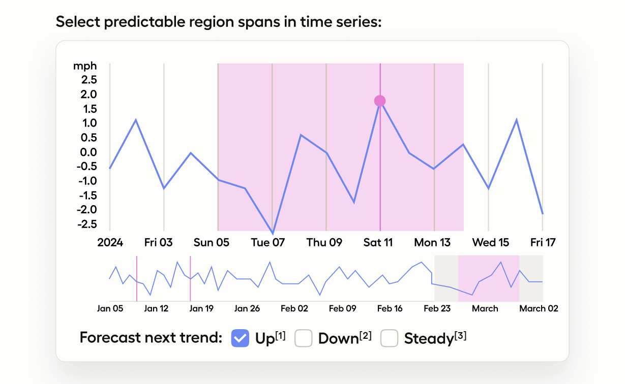 Use the TimeSeriesLabels control tag to highlight and label specific spans of a time series graph: